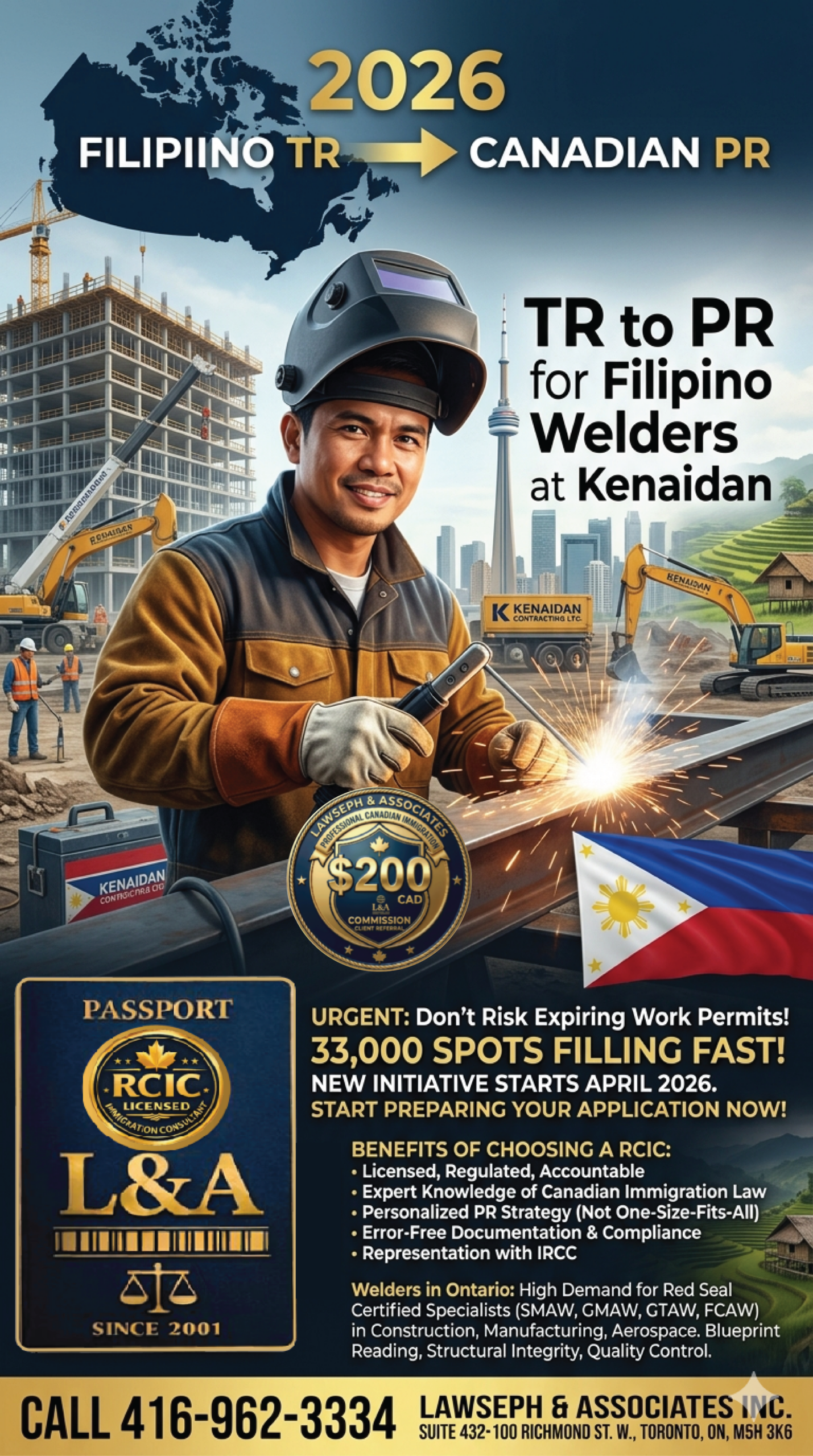 Permanent Residence (PR) for Filipino Welders working in construction for Kenaidan Contracting Ltd. in Mississauga in 2026